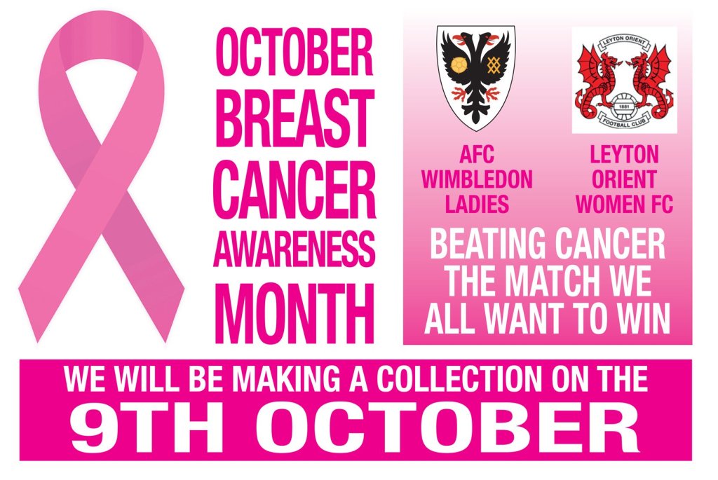 The Dons hosted Leyton Orient in this my first midweek evening next match; a mouth-watering 3rd versus 4th clash. It would be memorable for the Dons’ stout rear-guard action in the last twenty minutes, but more importantly for tying in a fundraising evening for Breast Cancer Awareness held in the bar.