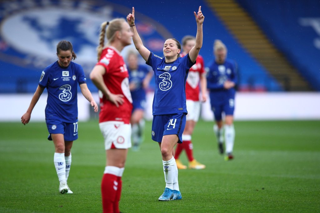Less than 90 seconds after kick off the Blues were in front, zig-zagging from one end of the field to the other through Sophie Ingle, Jessie Fleming, Guro Reiten and Frank Kirby, who put her cross on a plate for Kerr to tap in from a yard out.