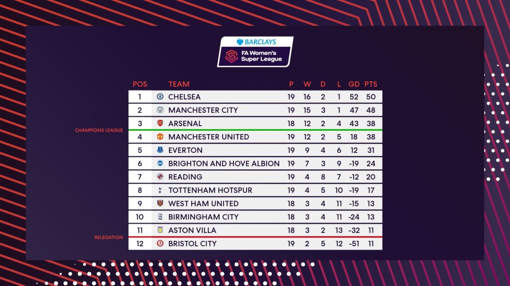 Earlier in the campaign Villa went to Twerton Park and thrashed the Vixens 4-0. But Matt Beard’s side have become a very different proposition since the end of January, when they secured their first win of the campaign against Brighton. They’ve picked up nine points over their last eight fixtures to get themselves back in survival contention, although every other basement rival has a game in hand and City have to face both Manchester United and Arsenal in their run-in.