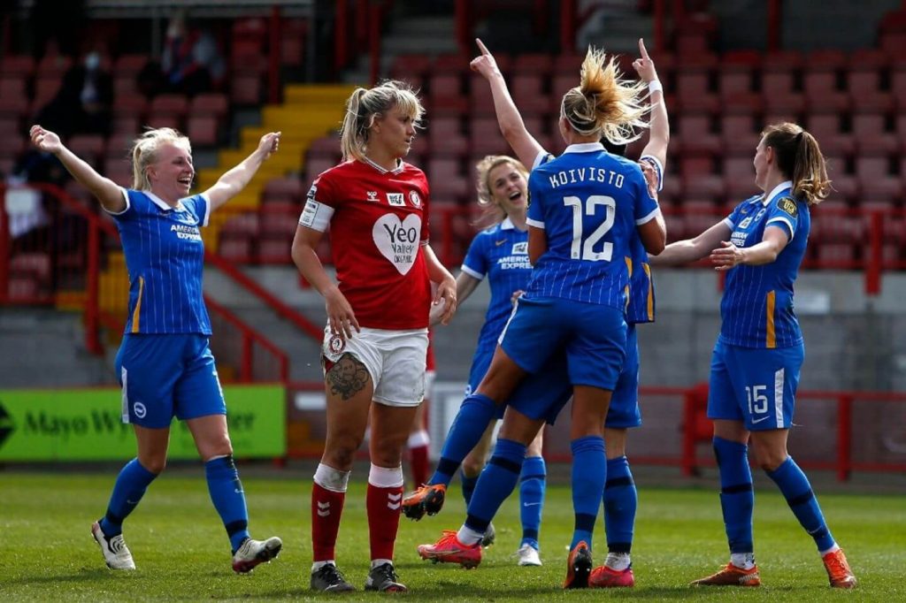 7′ GOAL: Despite a confident start, disaster strikes for Bristol City. They fall behind after a short corner between Inessa Kaagman and Ellie Brazil catches them snoozing. Kaagman clips the return ball into the six-yard-box, Sophie Baggaley can’t gather and it drops to Maya Le Tissier who squeezes her volley through a crowd of bodies from close range. The Seagulls haven’t lost from a winning position at home since November 2019. Not the sort of thing City fans will want to hear about. The goal moves Brighton above Reading into 6th spot. Brighton 1-0 Bristol City.