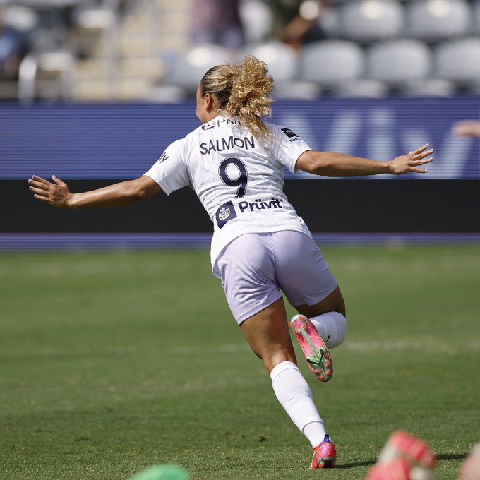 Salmon came into the match as a substitute for Ce Ce Kizer in the 71st minute. By the 72nd minute she had her maiden NWSL goal. Savannah McCaskill burst through midfield and located the striker on the edge of the penalty box. She beat one defender with a drag back and then two more with a smart turn before rifling past Campbell from twelve yards.