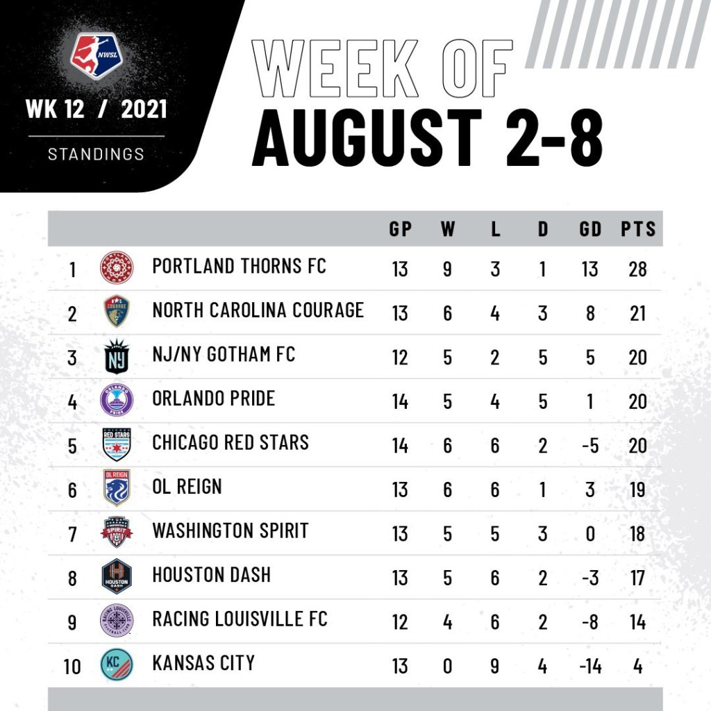 Portland would extend their lead at the top of the league standings during week 12. But despite this the rest of the table continued to look very tight with just four points separating North Carolina, in second, from eighth placed Houston.
