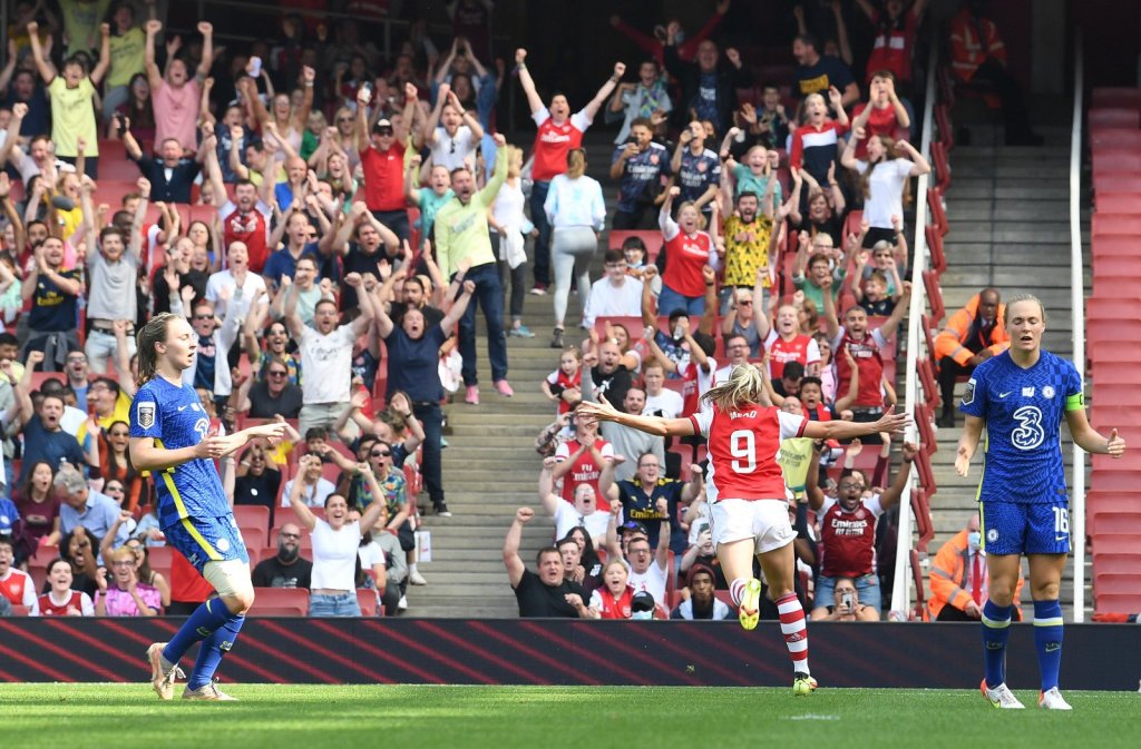It was a great time for the visitors to score but Arsenal wrested control back almost immediately in the second period when Miedema threaded Beth Mead in behind the Chelsea backline. Mead raced away from Magda Eriksson and Millie Bright, shaped to check back on to her right foot as she arrived at the penalty area and then rifled past Berger with her left.